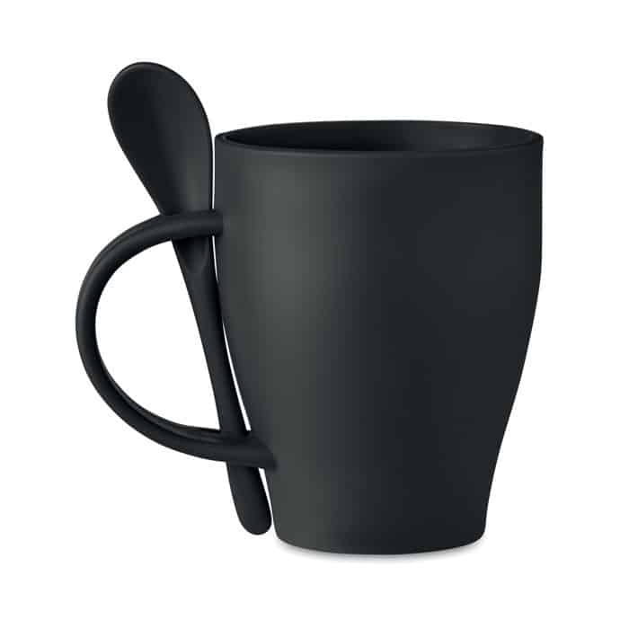 Skodelica za večkratno uporabo iz PP z žlico. V tej skodelici popijte svojo najljubšo kavo, čaj ali vročo čokolado. Preprosta, a klasično oblikovana skodelica za vsakodnevno uporabo. Ta skodelica ima uporabno žlico, ki jo lahko pritrdite na ročaj. Prostornina 300 ml.