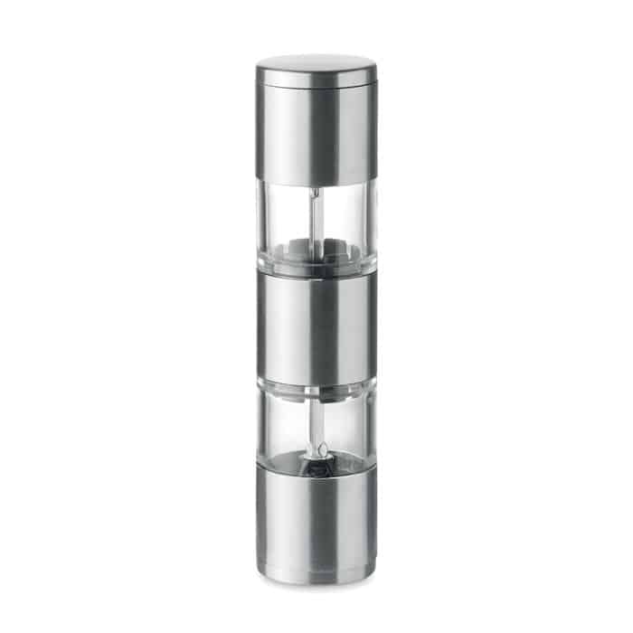 Kombinirani mlin iz nerjavečega jekla 2 v 1 z integriranim ročnim keramičnim mlinčkom.