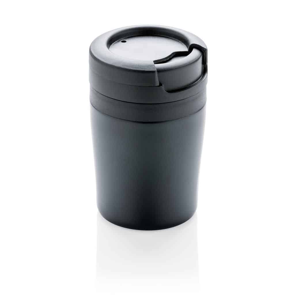 Manj je več. Tumbler je visok 8 cm. Ima dvojno steno, kar bo vašo pijačo ohranilo toplo. Idealno se prilega tudi vašemu kavnemu avtomatu ali nastavku v avtu. Ima PP notranjost. Odličnen je za Ristretto, Espresso in Lungo kavo. Lonček lahko enostavno uporabljate tudi z 1 roko. Primeren je za ročno umivanje. Vsebuje 160 ml. Ima zaščiten, XD dizajn.
