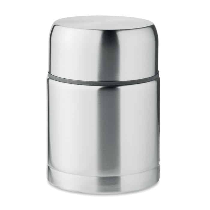 Dvostenska izolirana posoda za shranjevanje iz nerjavečega jekla z vijačnim pokrovom.