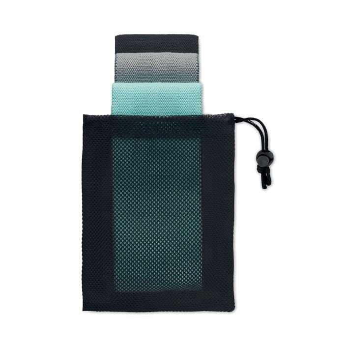 Set 3 fitnes trakov iz terilena, bombaža in lateks svile v RPET torbici.