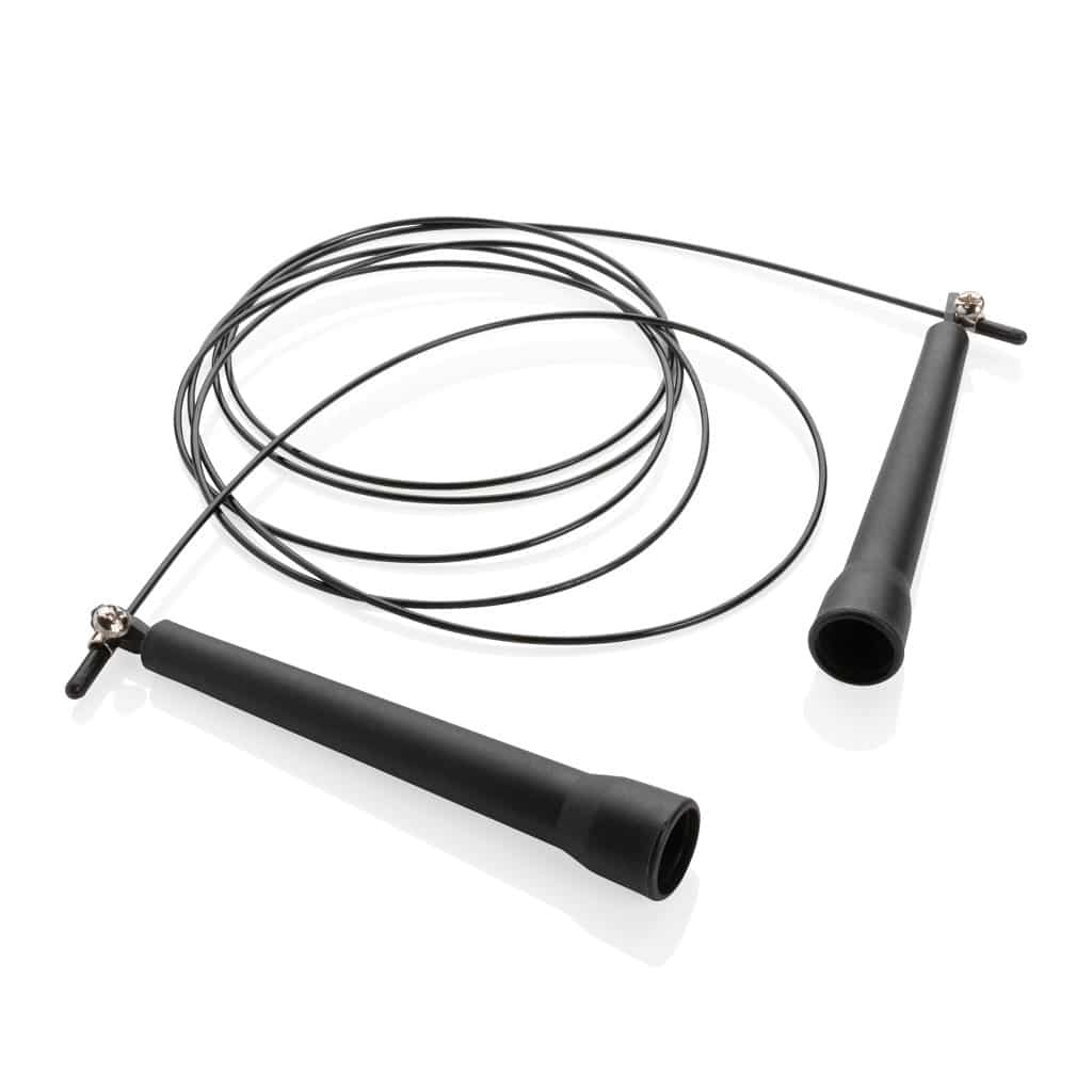 Ta nastavljiva skakalna vrv je kot nalašč za vključitev visoko intenzivnega kardio treninga v katero koli vadbo.Poveča srčni utrip, porabi kalorije in izboljša koordinacijo. Dolžino lahko enostavno prilagodite različnim uporabnikom. Izdelana iz super lahke plastike (PP) za optimalno hitrost in ima udobne ročaje. Kolebnica je v črni torbici za lažje prenašanje.