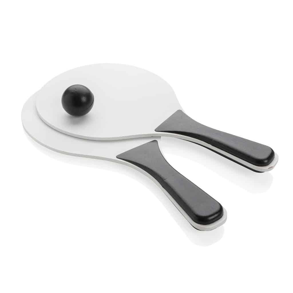 MDF set PingPong za plažo z ročajem iz PP. Pakirano v mrežo, vključno z 1 žogico.