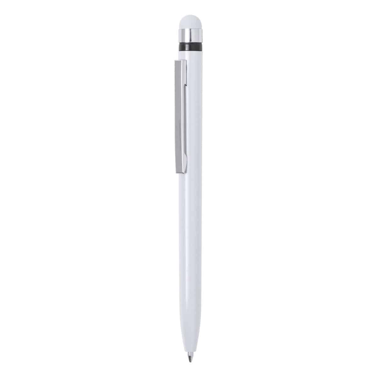 Plastična kroglična pisala in pisalo na dotik z modrim vložkom.