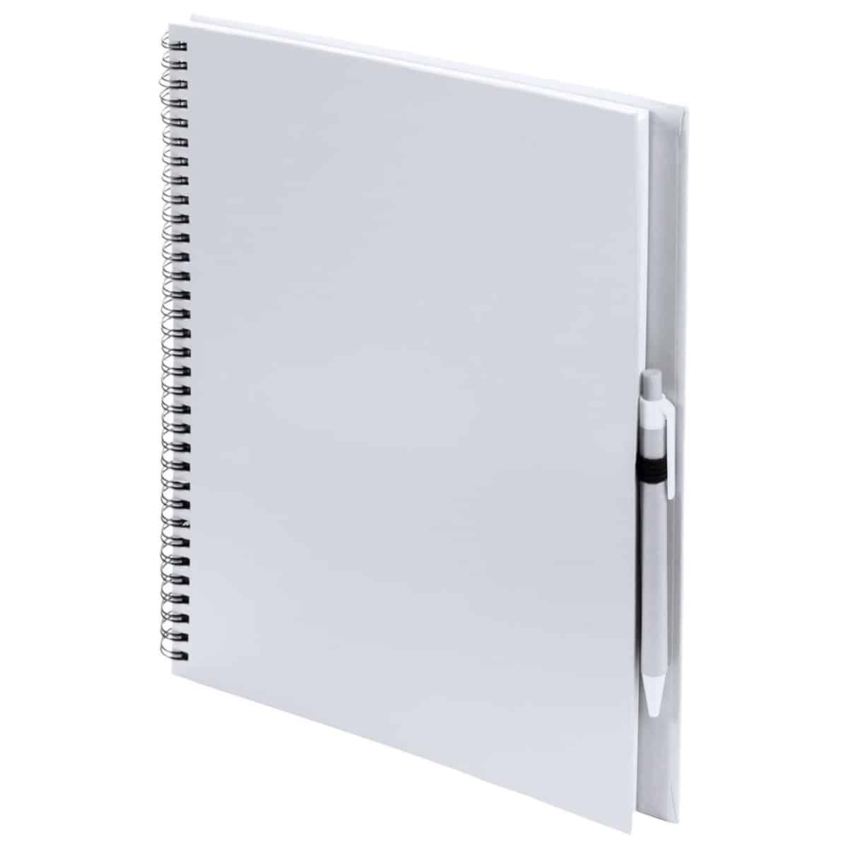 Spiralni zvezek z 80 listi in kemičnim svinčnikom iz recikliranega papirja ujemajoče se barve z modrim polnilom, A4.